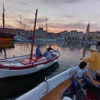 Vendredi en fin d'après midi nous sommes donc partis du Brusc à quelques uns à bord de 5 pointus ( le ND du Mt Carmel, La Fossette, Doffen, le Biou et Gianni) afin d'honorer l'invitation qui nous a été faite par nos voisins de Sanary. L' occasion d'échanger avec d'autres passionnés, notamment avec la Fédération du Patrimoine Maritime Méditerranéen qui a pour mission de rassembler tous ceux qui œuvrent en ce sens, on a parlé Voile Latine bien sur, et d'actions en devenir pour gagner en notoriété.